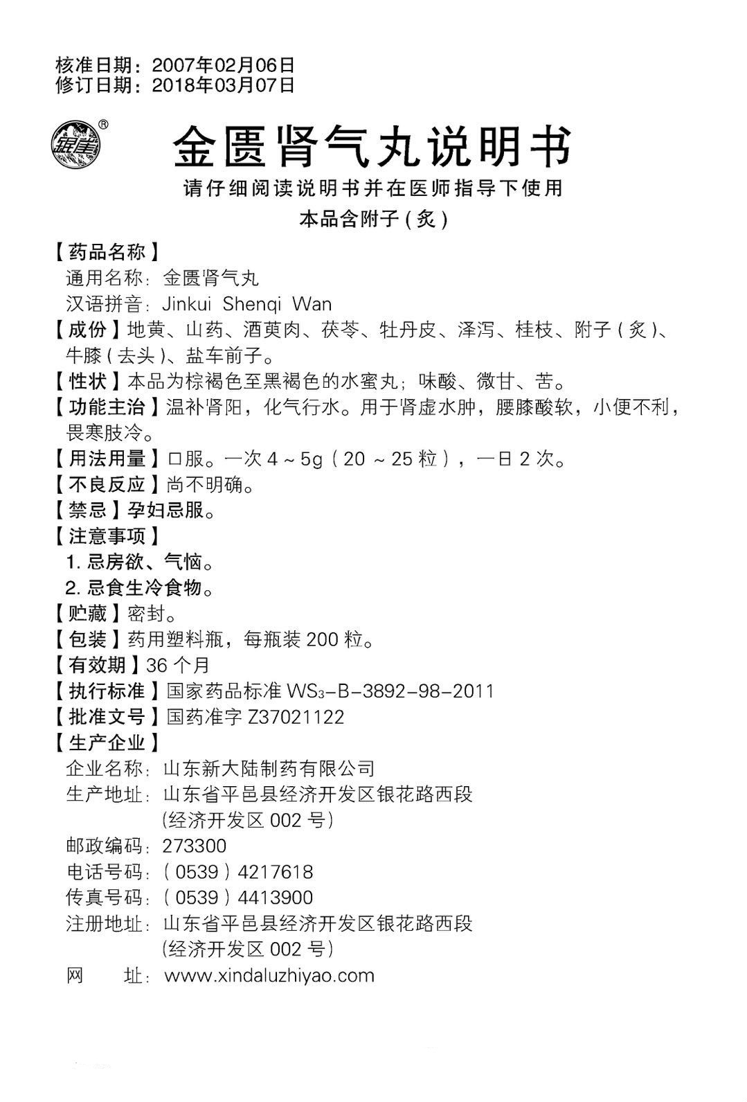 [功能主治] 溫補腎陽,化氣行水。用于腎虛水腫,腰膝酸軟,小便不利,畏寒肢冷。